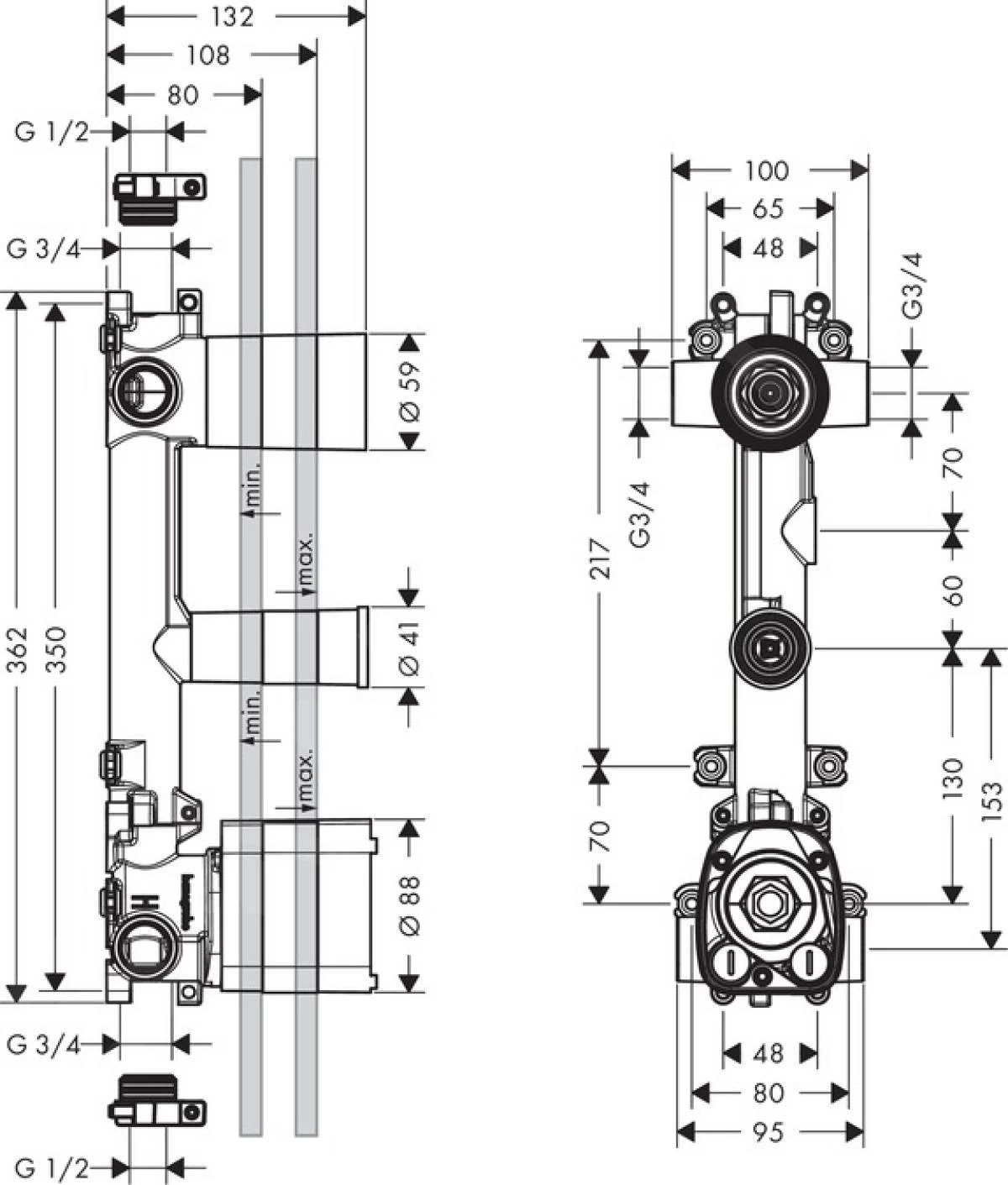 - l’installation requiert un set de finition de module thermostatique 8 x 12 pour 2 sorties