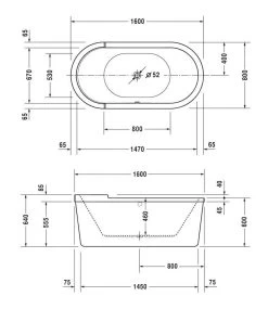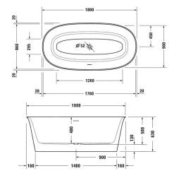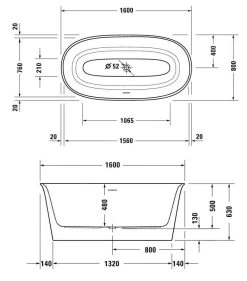 Duravit Zencha – Baignoire En îlot 1600×850 Mm, DuraSolid, ClickClack, Blanc 700462000000000