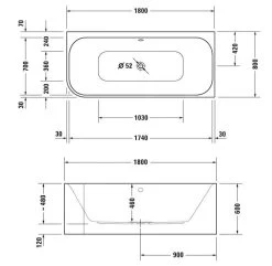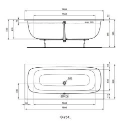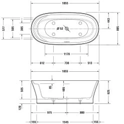 Les pieds de la baignoire ainsi que les garnitures de vidage et de trop-plein d’une longueur de 725 mm ne sont pas fournis, ils doivent donc être commandés séparément.