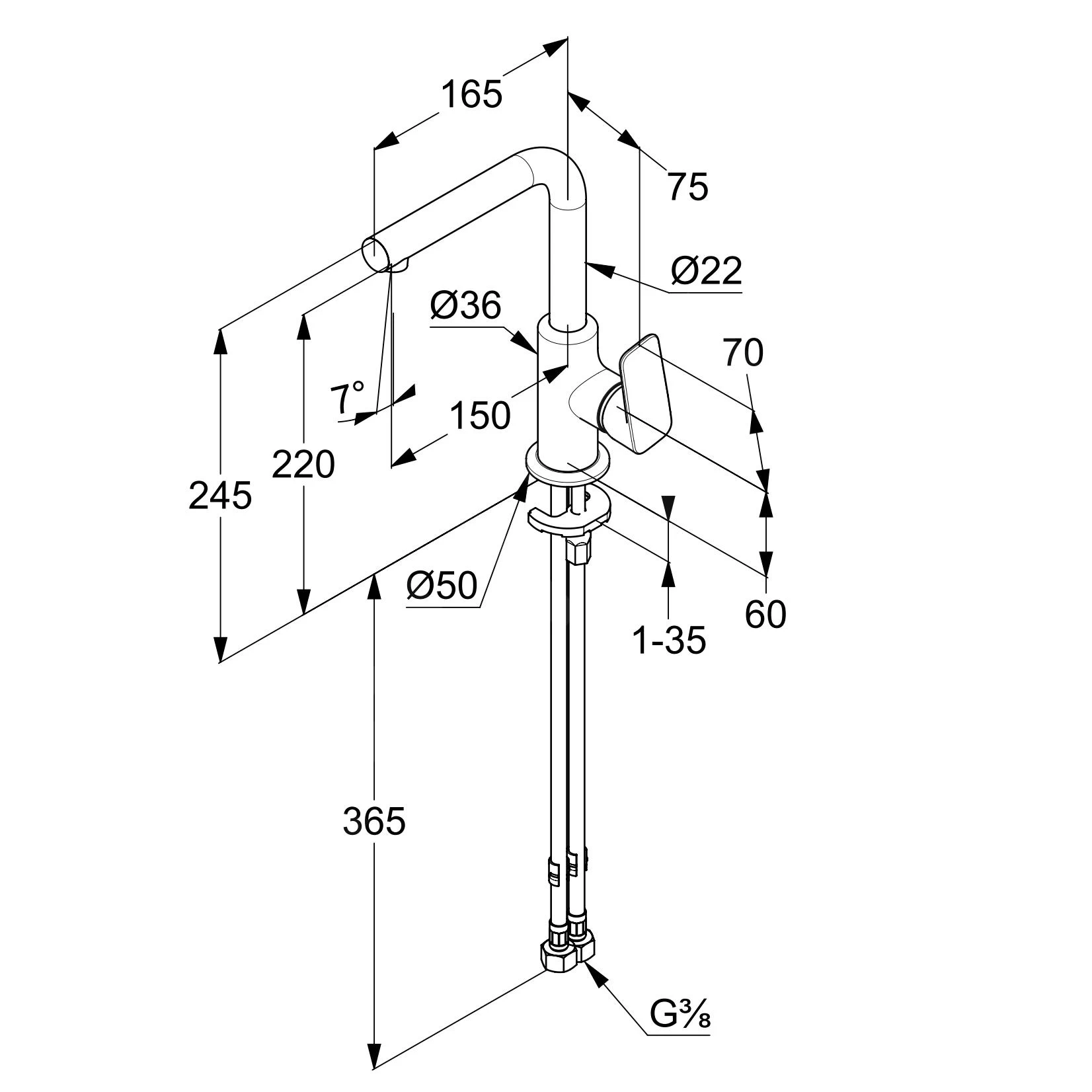 - hauteur du mitigeur 245 mm