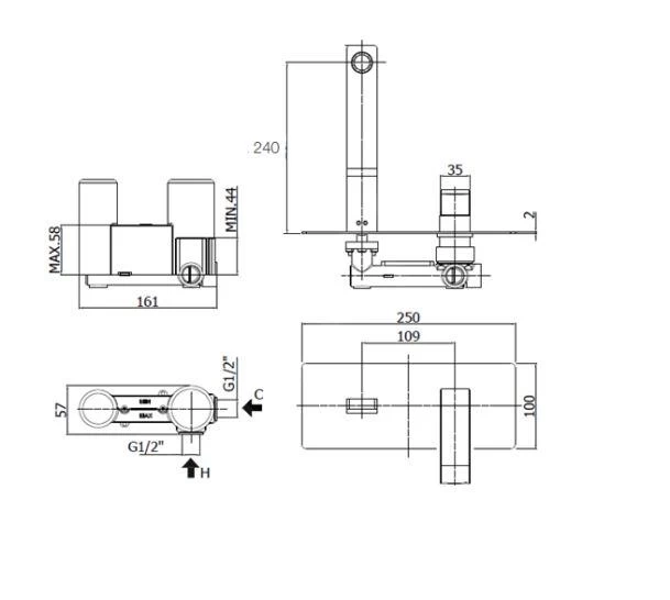 Mitigeur de lavabo encastré