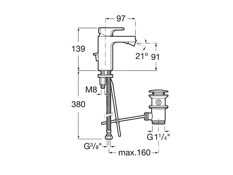 - Hauteur du mitigeur : 139 mm